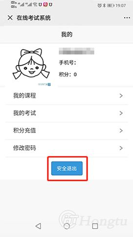 由于手机或电脑有缓存功能,考生在使用完题库后应“逐级”退出。尽量点击“安全退出”来完成注销登录,这样下次登录时打开的就是登录首页。如果不执行“安全退出”功能,下次登录后还是上次已登录时的状态。