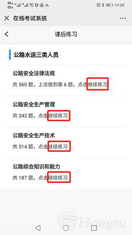 操作过程如图, 登录题库系统,点击“考试”,选择“课后练习”模块,系统自动出现提示行文字:点击“继续练习”四个文字即可。